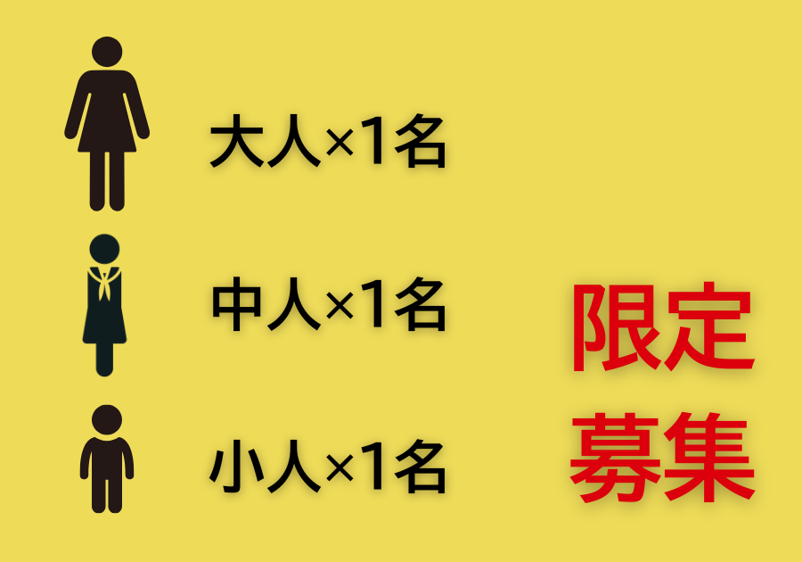 | 未就学児,小学生1年~2年,小学生3年~4年,小学生5年~6年,中学生,高校生以上,年齢不問 | |