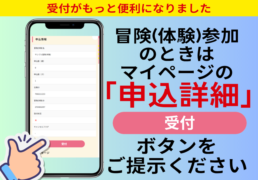 ※「こども冒険バンクを見た」と伝えるとスムーズです。お問い合わせの際には冒険会員IDとニックネームをお伝えください |
